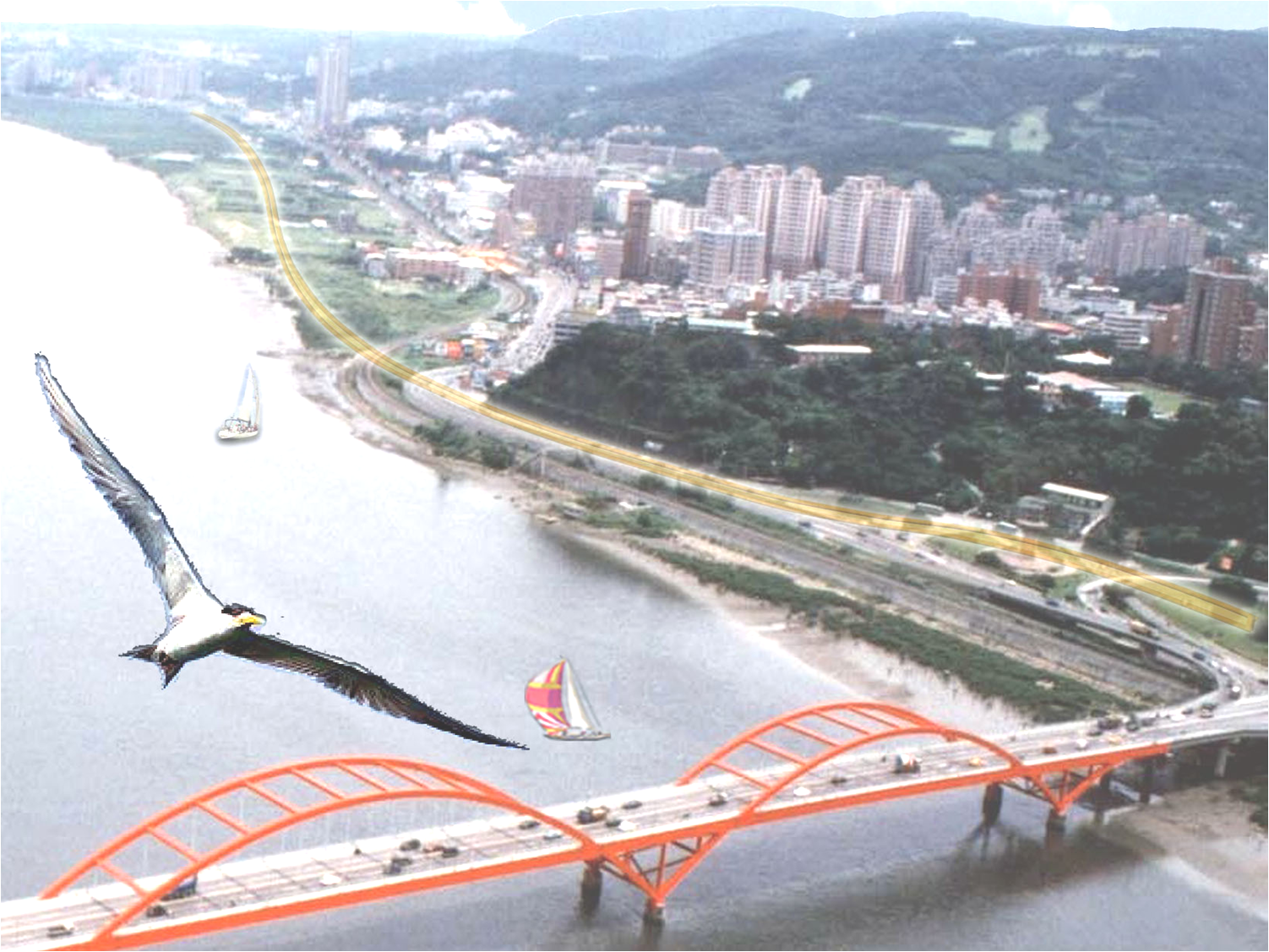淡江大橋已核定 北海岸交通改善 其次,淡江大橋也已經決定興建,國工局當年在興建新店公里快速道路時,在八里端部份已經預先埋好架橋的鋼柱,該案並且在新北市長朱立倫擔任行政院副院長時,於去年4月9日正式核定,並由朱副院長對外宣布可行性規劃報告,淡江大橋全長8.5公里,總預算141億元,最快於民國103年動工,107年完工通車,該橋是由八里十三行銜接至淡水油車口,八里端可經由省道台64線快速道路直達台北港,也可經台61線接上台15線西濱快速道路接上中山高往桃園機場;淡水端則經由沙崙路通往淡水漁人碼頭並接往淡海新市鎮道路後再接上台2線北部濱海公路往三芝、石門及基隆。